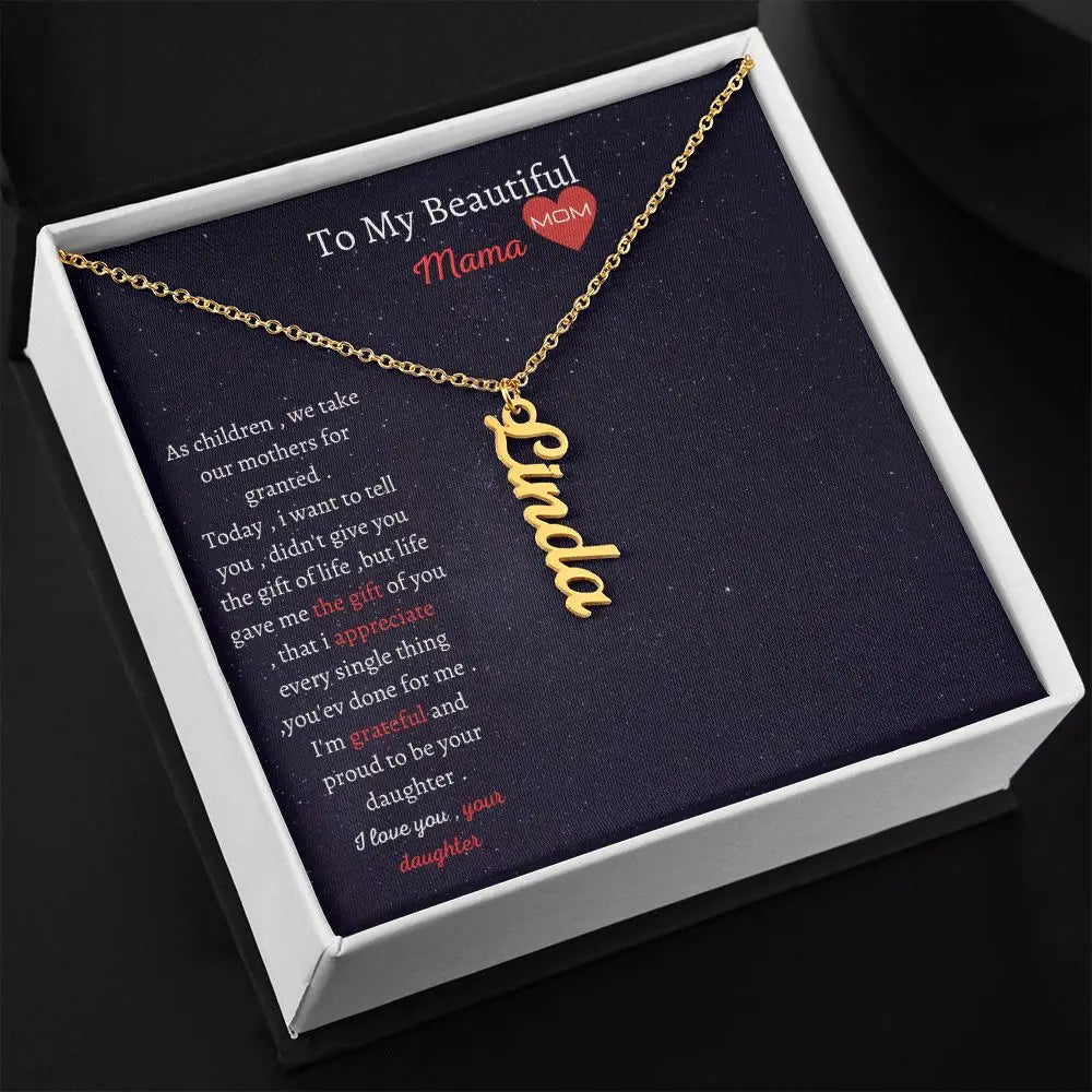 Gift Personalized vertical Name Necklace To Mom's.